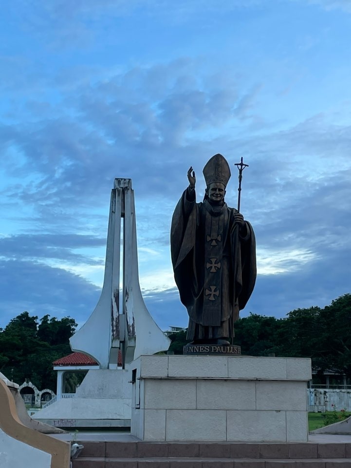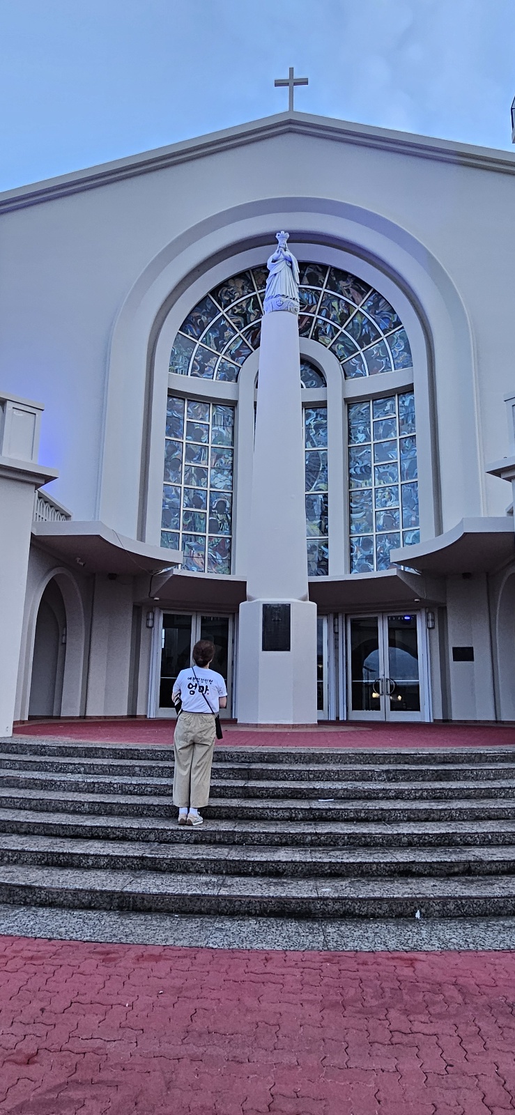 아가나 성당 앞에서 우리 모두를 위한 기도를 청하며
