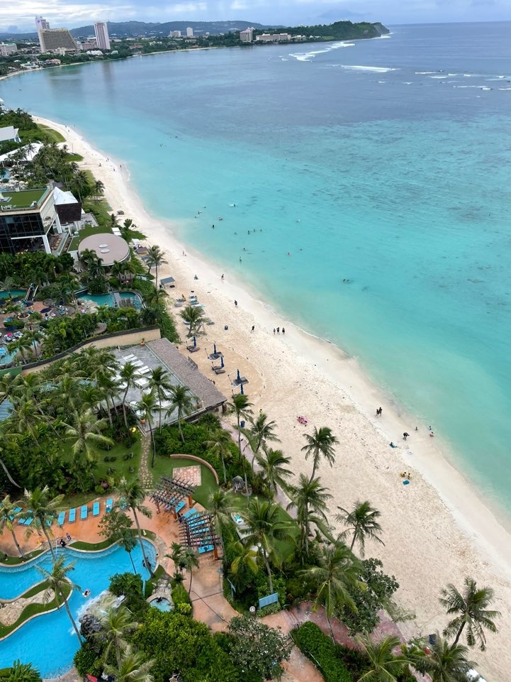 두짓비치 괌 호텔에서 바라본 전망 훼미리 가족방은 근사했다. 주변에 바로 바다와 맞닿아서 휴양하기 딱 좋음