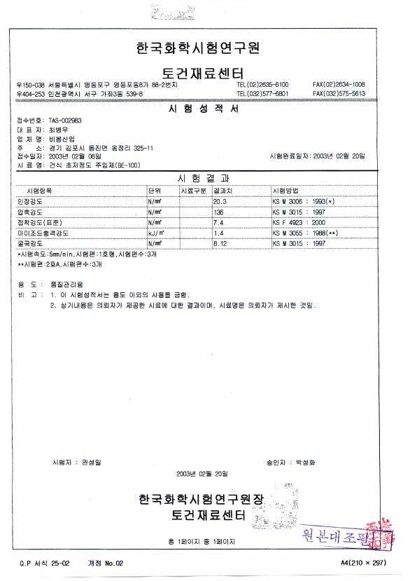 | 12 | 건식고점도 주입제 시험성적서 | 관리자 | 07.10.17 | |