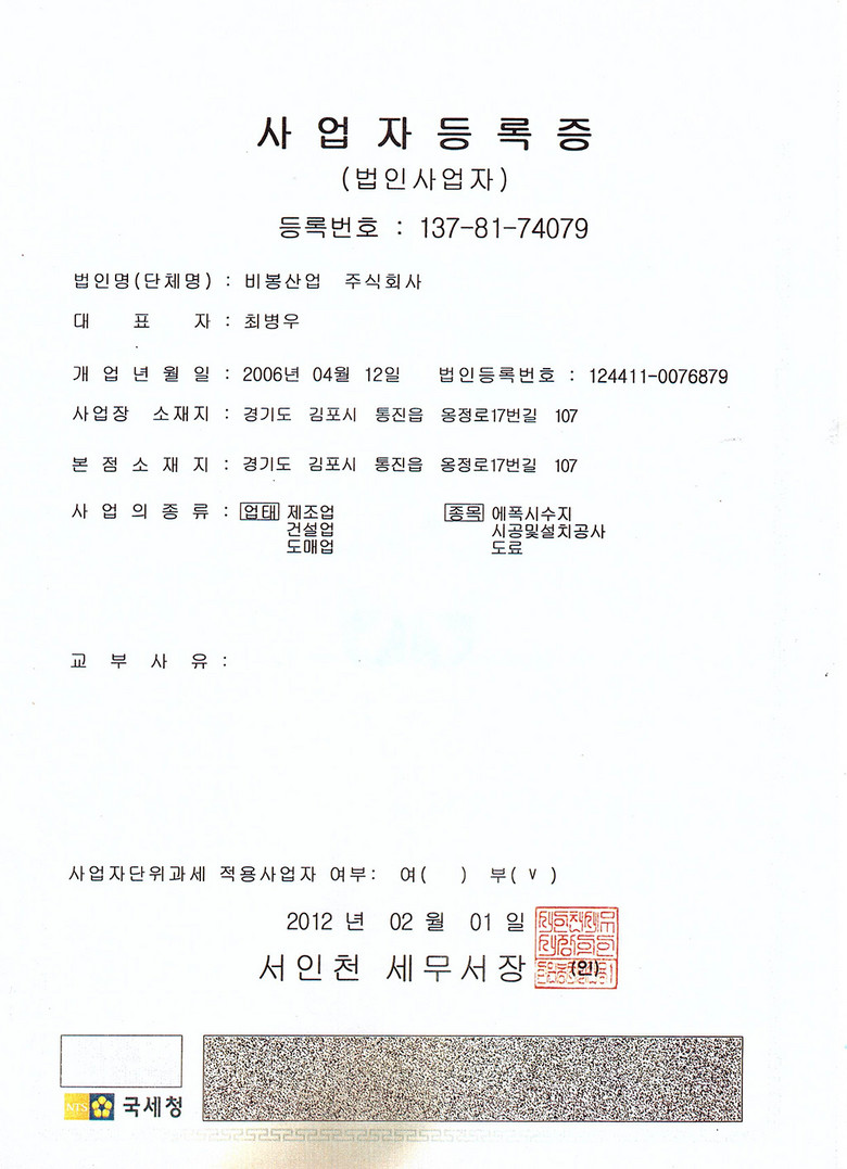 12 3. 공장등록증 2016년 비봉산업 관리자 16.01.28