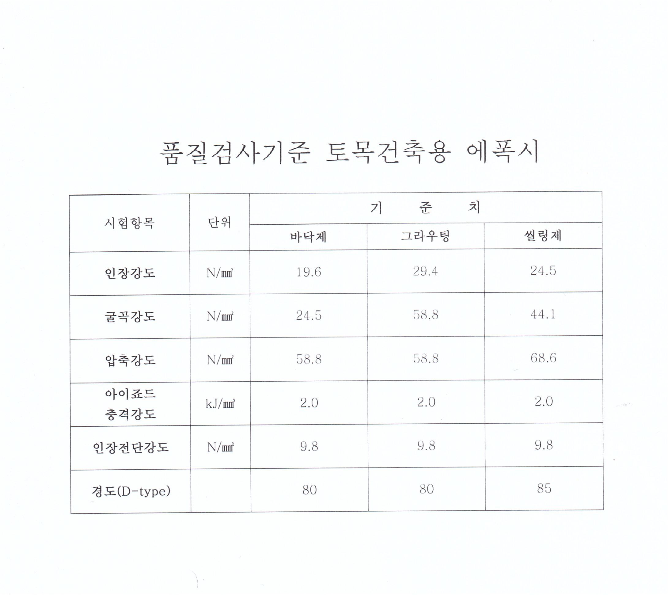 큐마크 준비용 시험성적서 ( 에폭시 바닥제. 그라우팅제 시험용, 씰링제 )