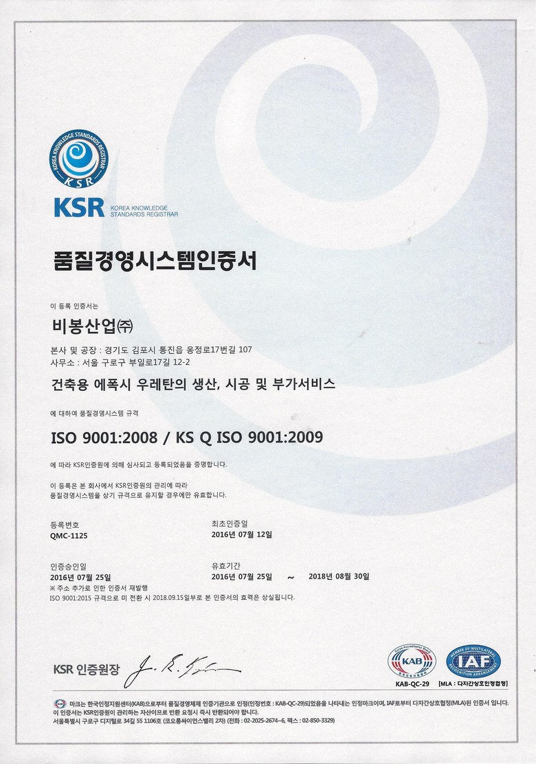 | » | ISO 9001 인증서 변경됨 (품질경영시스템 인증서) KSR 인증원 | 관리자 | 16.07.13 | |
