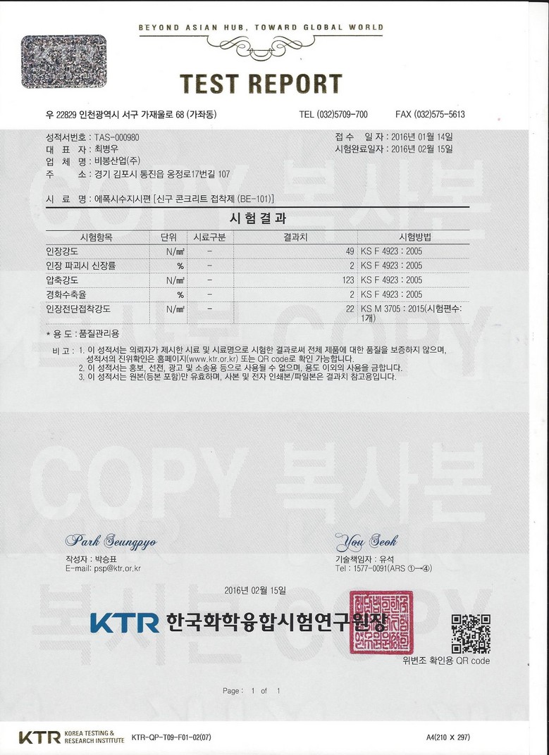 신구접착제 시험성적서 (BE - 101)