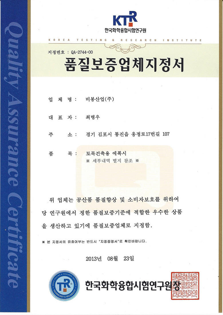 | » | 비봉산업 품질안전 큐마크 시험성적서 2019.11 | 비봉관리자 | 19.10.31 | |
