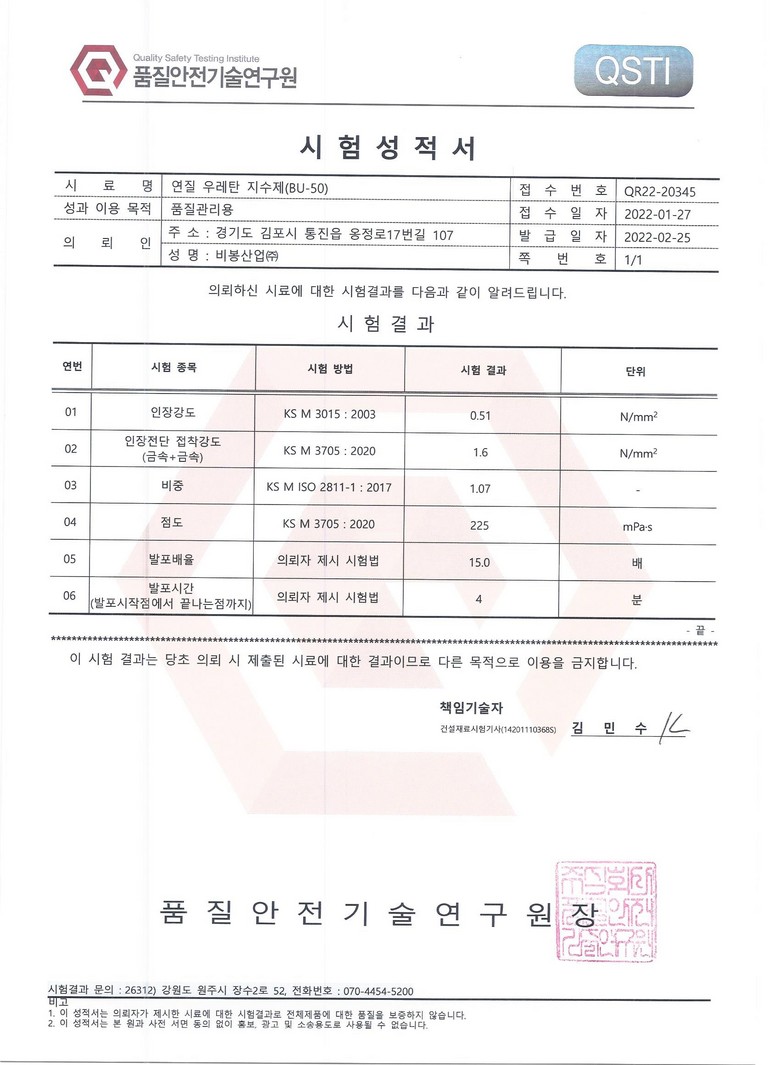 | 295 | 우레탄발포제 경질 BU-50F 시험성적서 2022년 | 비봉관리자 | 22.03.02 | |