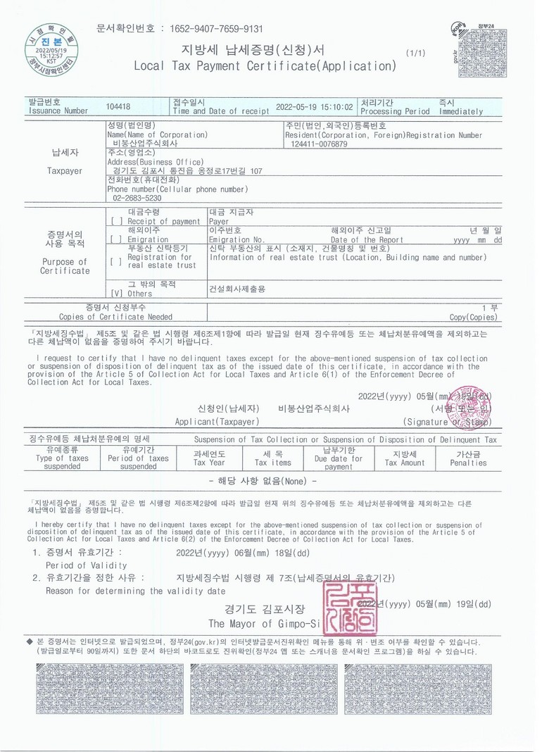 | » | 납세완납 지방세완납 2022년 6월 비봉산업 | 비봉관리자 | 22.05.19 | |