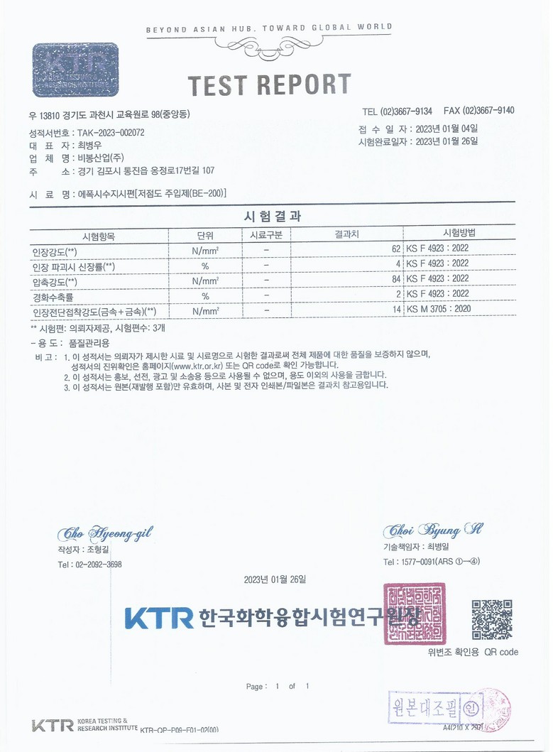 | » | 2023년 시험성적서 (건식 저점도주입제 BE -200 ) | 비봉관리자 | 23.02.02 | |