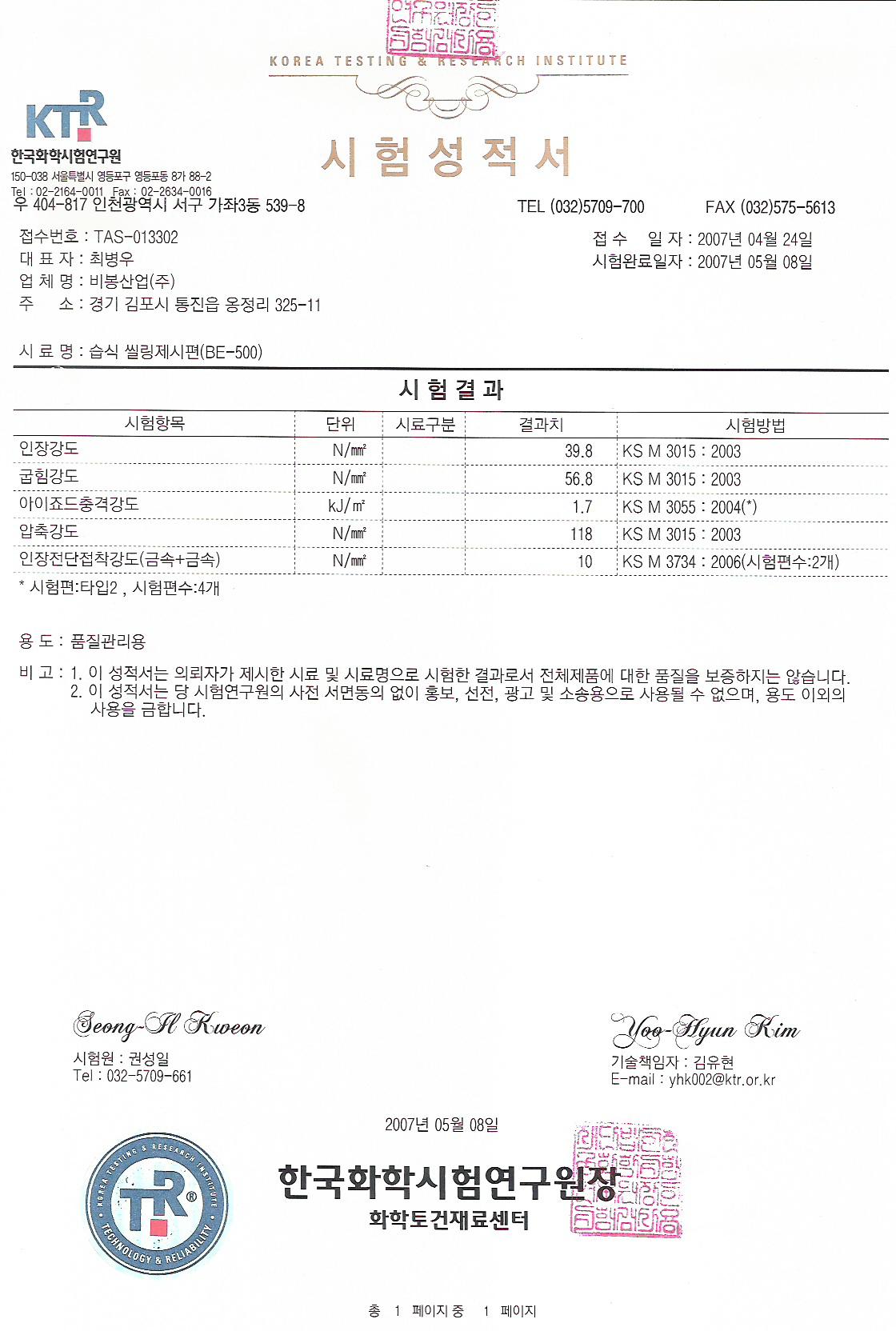 » 2007년 습식씰링제 BE-500 관리자 07.10.17
