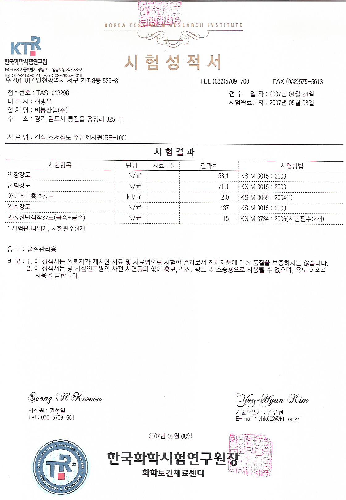| 40 | 2007년 탄성씰링제 BE-600 | 관리자 | 07.10.17 |