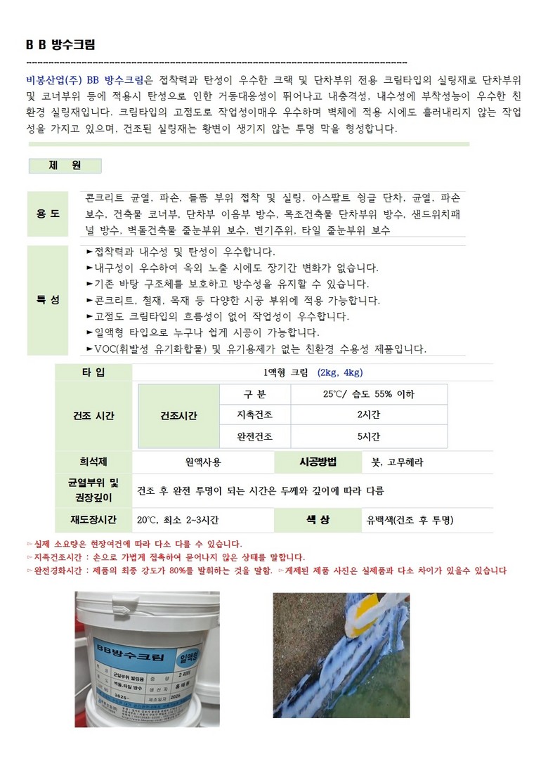 비비방수크림 작은통 자가방수 투명색 크림방수로 크랙부위에 헤라나 로라로 바르면
