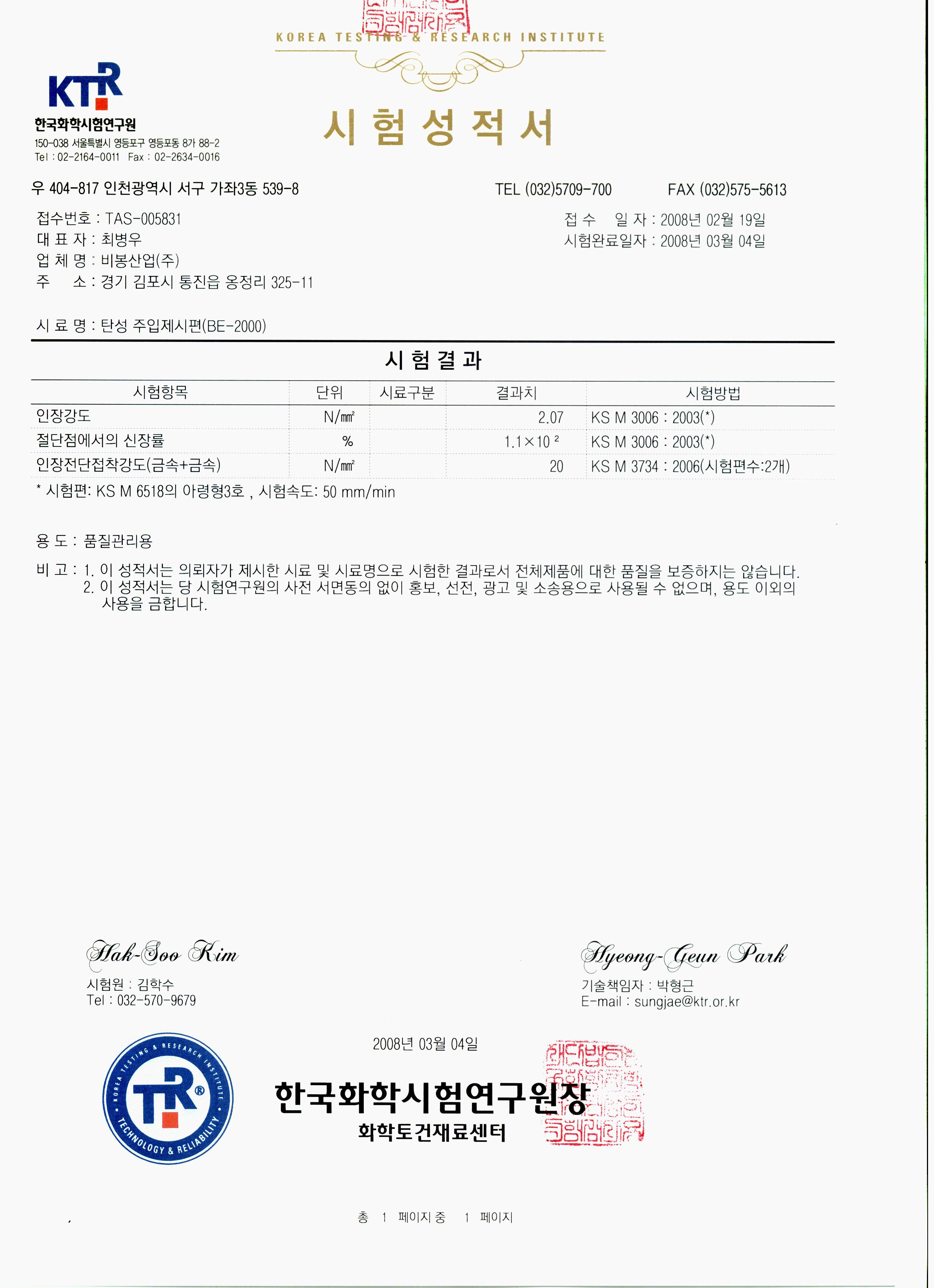 2008년 탄성주입제 (BE-2000)