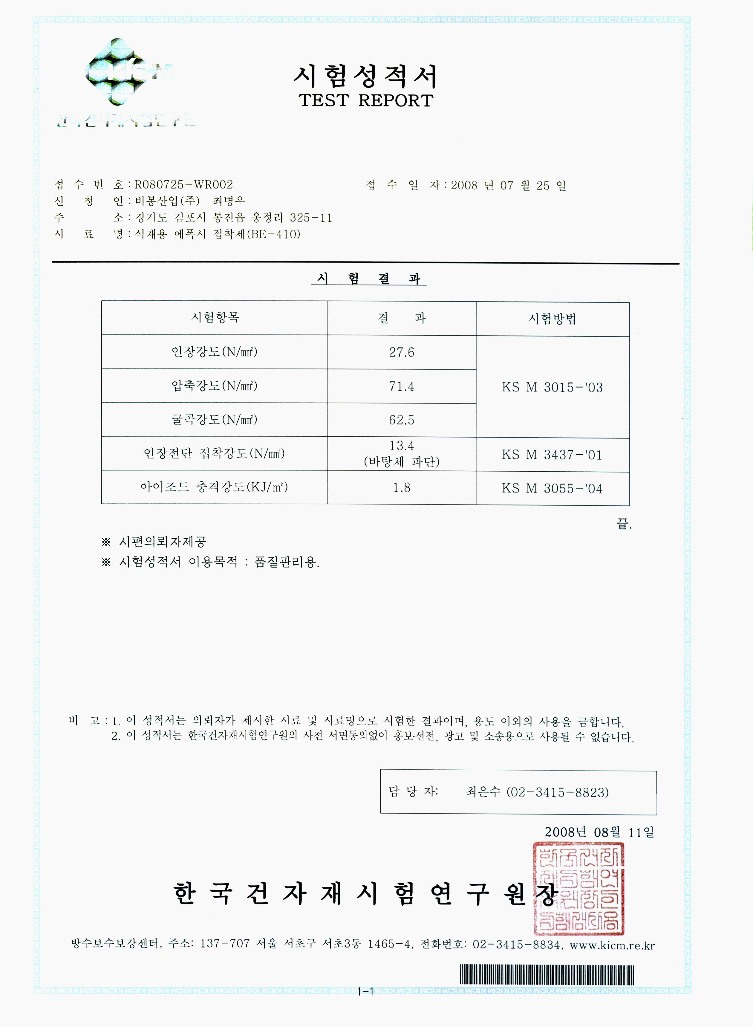 | » | 석제용 에폭시 접착제 BE-410 | 관리자 | 08.08.13 | |