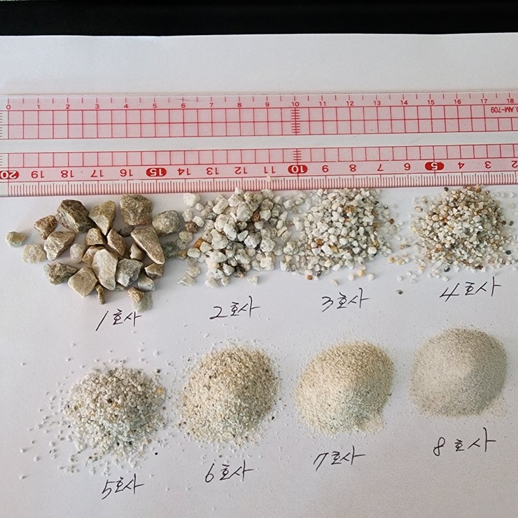 규사란 화강암등이 풍화된 경도가 큰 비금속 광물중 하나인 규석을 물리적으로 파쇄하여 일정한 입자로 선별한 석영알갱이로서 내화도는 높으나 결합력이 작아 주강용 주물사나 유리원료및 반도체 신소재 건축자재등오 널리 쓰이는 기초 산업용 소재입니다